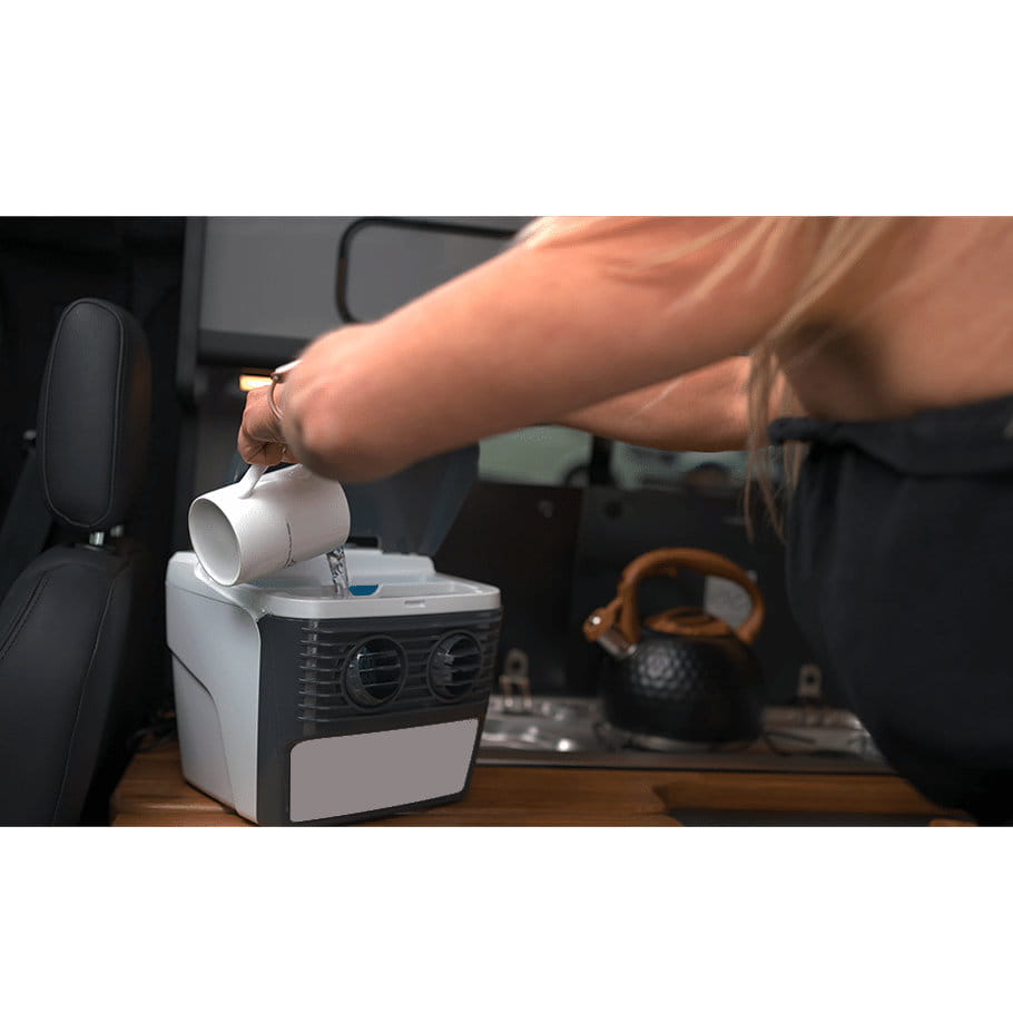 Este conjunto es la elección perfecta para personas que buscan soluciones de refrigeración portátiles mientras viajan, acampan o están al aire libre, garantizando comodidad y refresco en todas las condiciones.