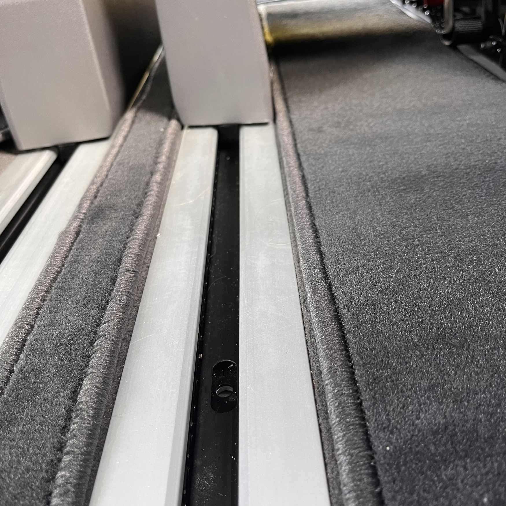 Nuestro juego de alfombras permite que todos los asientos para moverse en los rieles del piso.