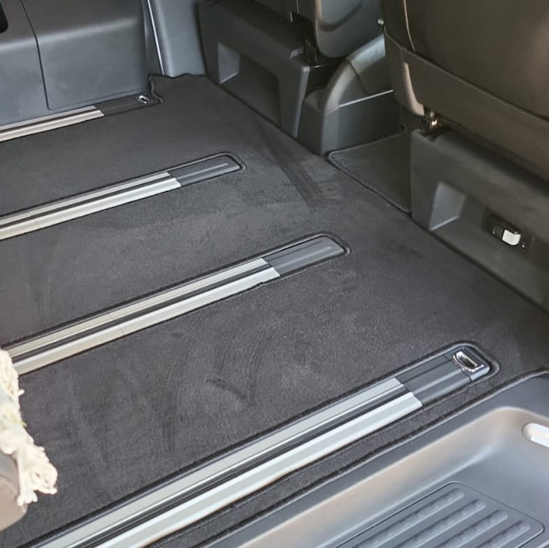 Las alfombrillas están cuidadosamente cosidas alrededor de todo el perímetro, lo que agrega durabilidad y un acabado estético. El uso de material de alta calidad garantiza no sólo suavidad y placer bajo los pies, sino también durabilidad, por lo que las alfombras le servirán durante muchos viajes largos.