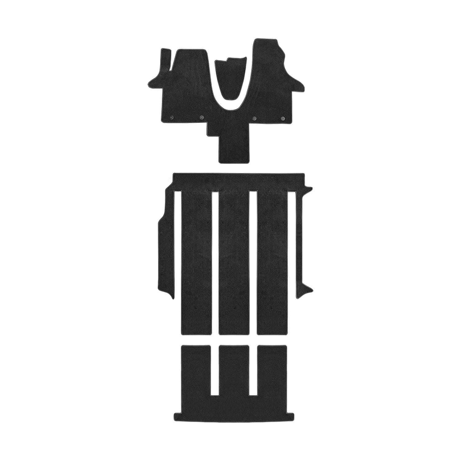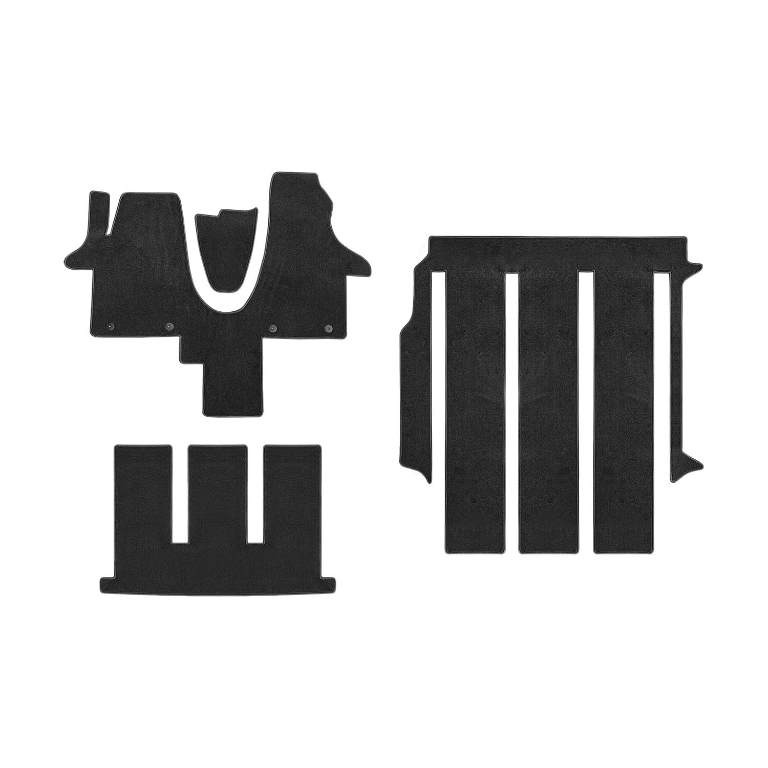 El set incluye: a juego de alfombrillas para primera fila de asientos, 2ª fila de asientos, 3ª fila de asientos, maletero