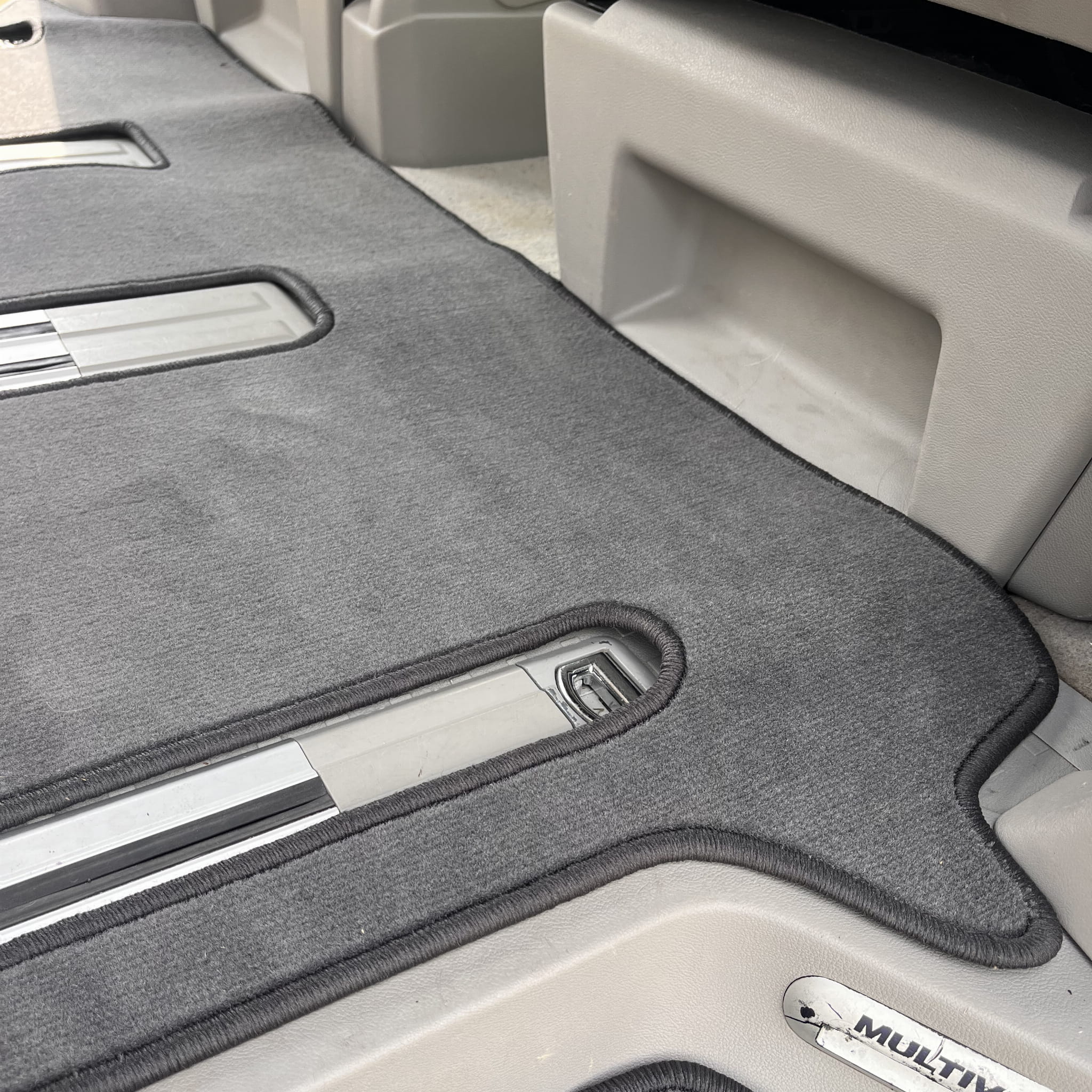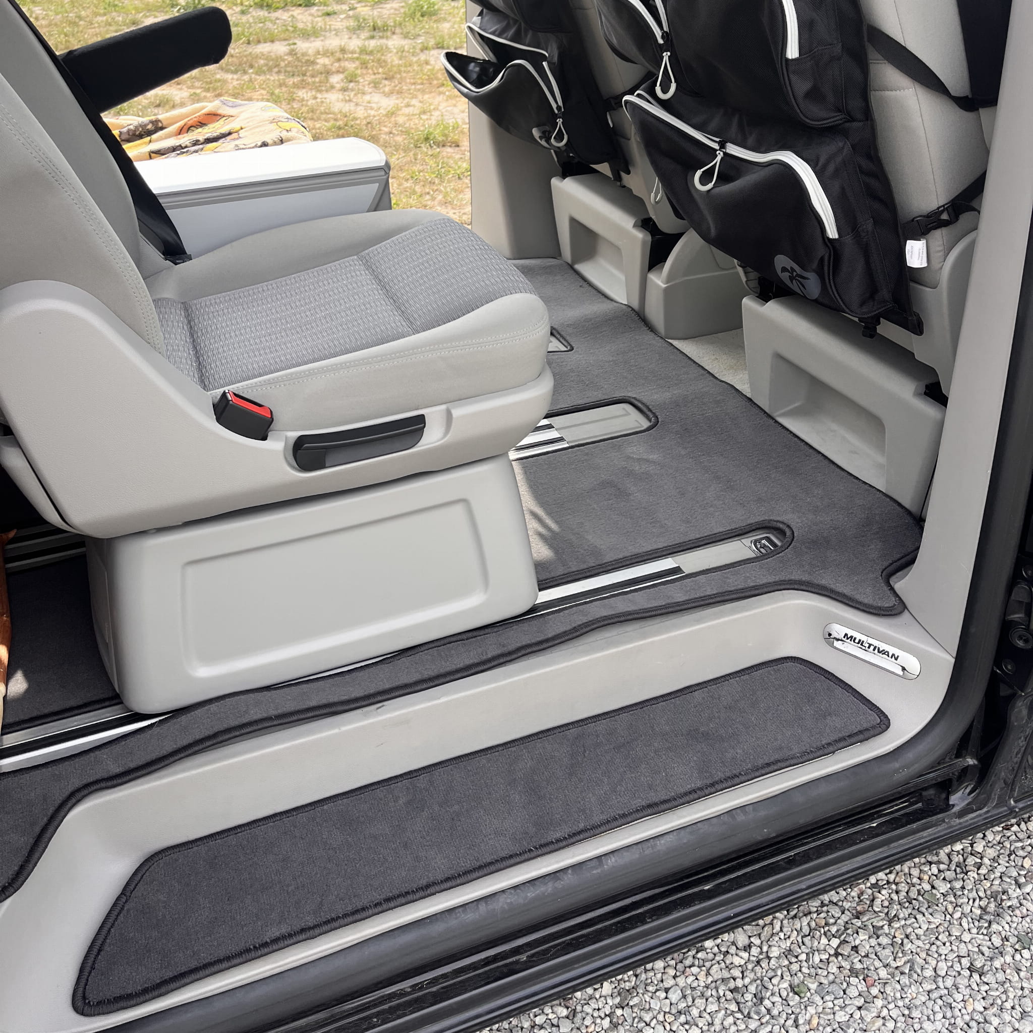 Las alfombrillas se adaptan a Multivan T5, T6, T6.1 con puertas correderas en ambos lados y mesa central.