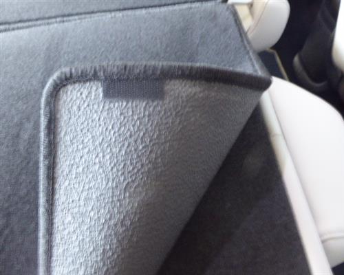 La fijación se realiza mediante una cinta de velcro cosida, que garantiza que las alfombrillas se mantengan permanentemente verticales y protejan la pared trasera en todas las condiciones.