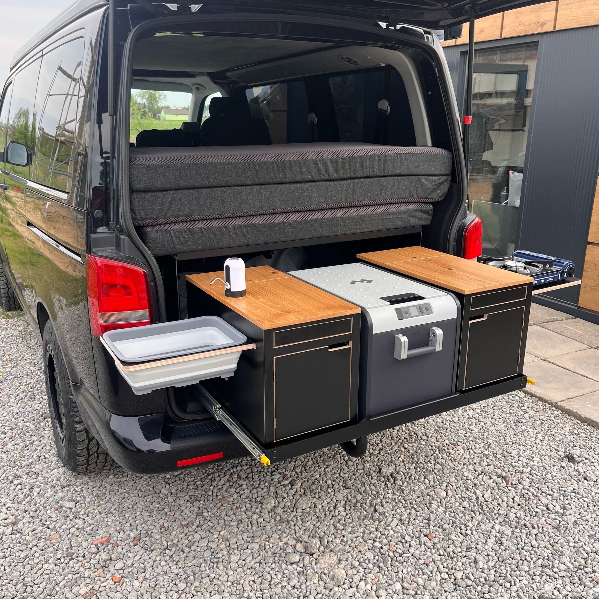 ¡Convierte tu VW en el campervan ideal! El box modular de camping EXCLUSIVE es la solución completa para los amantes de los viajes, que combina funcionalidad, durabilidad y elegancia en un solo producto.