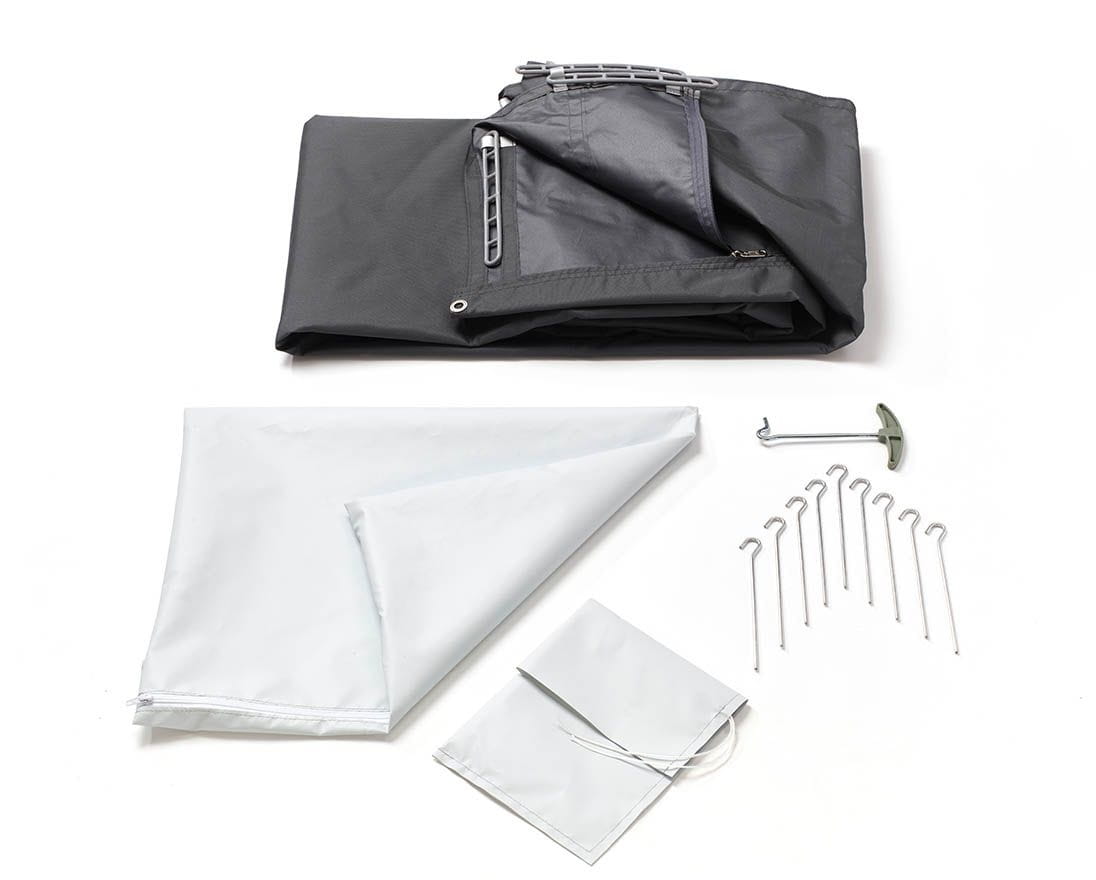 Contenido de entrega: Tienda trasera, clavijas, imanes, bolsa de transporte, instrucciones de montaje