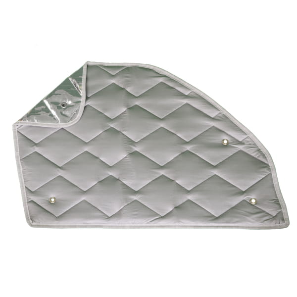 - Lado interior: material textil gris; Cara exterior: plateada, capa reflectante térmicamente inteligente.