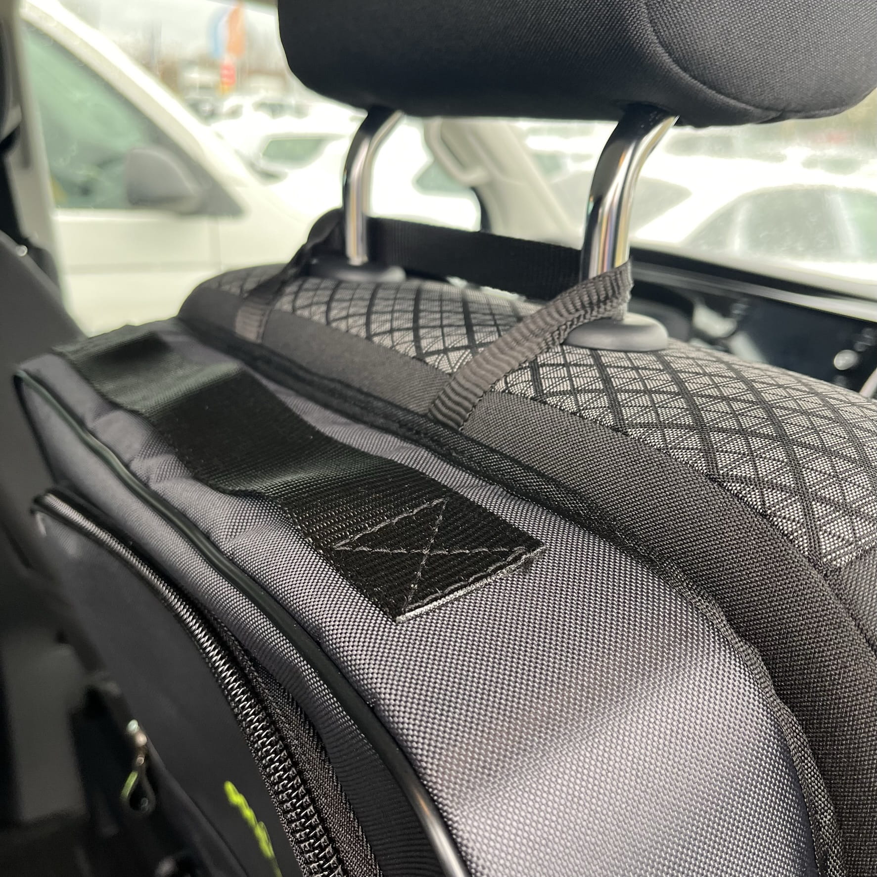 No es necesario desmontar el reposacabezas para fijar la bolsa.