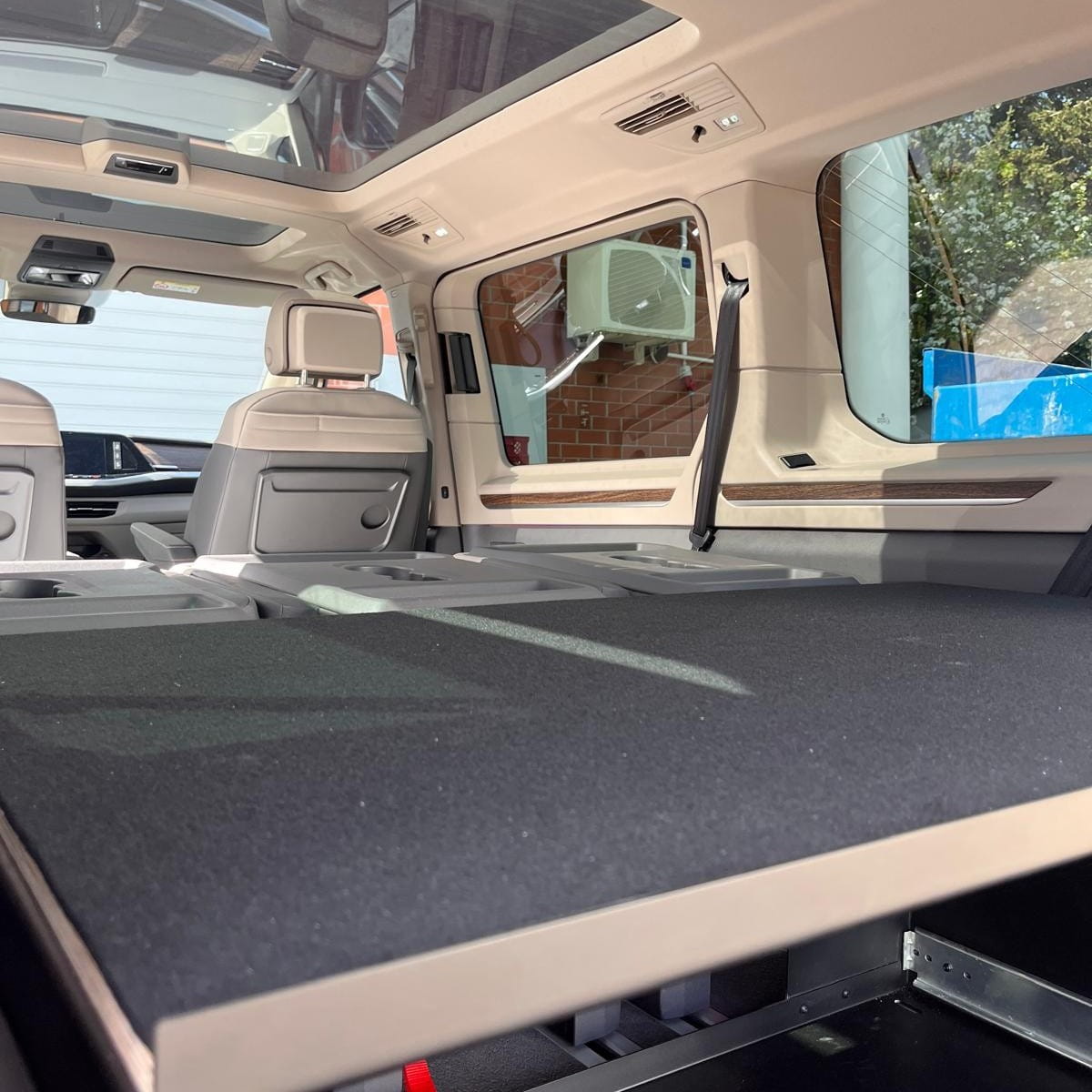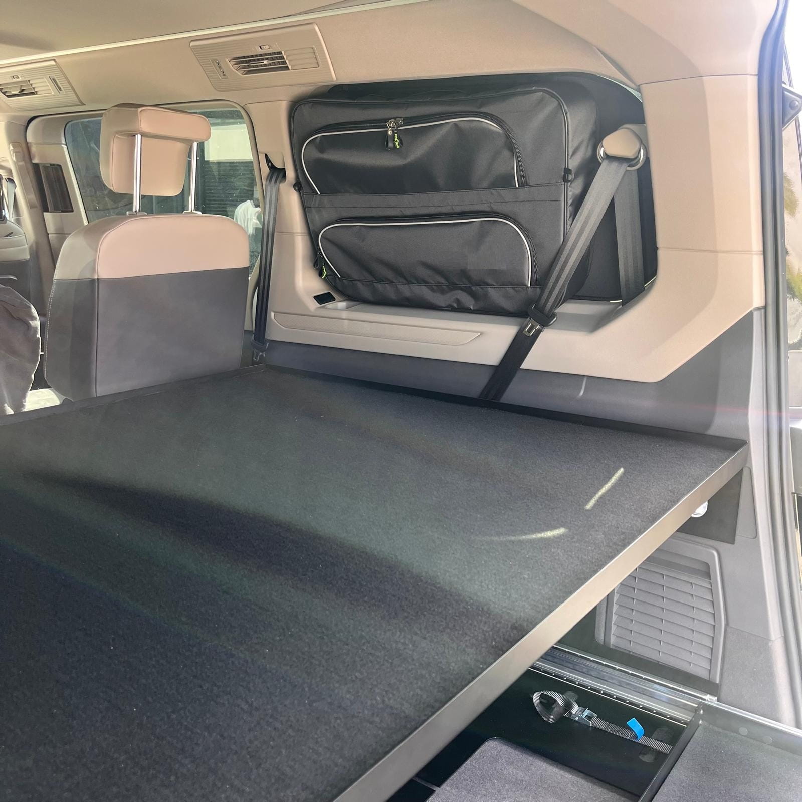 Para los amantes de los viajes y los campervans: al abatir los asientos, la plataforma se convierte en una extensión de la superficie para dormir, proporcionando condiciones cómodas para pernoctar en el vehículo.