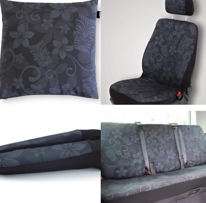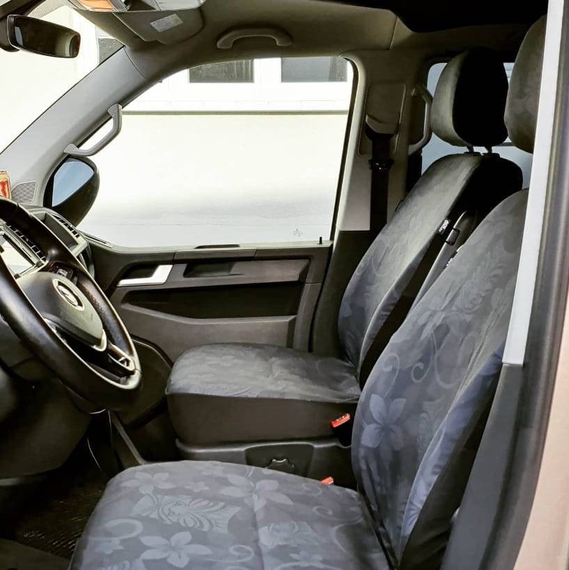 Las fundas están equipadas con Costuras especiales para airbags, marcadas con la etiqueta "AIRBAG", que actúa como rotura controlada en caso de activación del airbag. Las fundas han superado con éxito las pruebas técnicas en los modelos VW T5 y T6 con airbags internos. No se aplica a modelos VW T5 más antiguos con airbag debajo de una cubierta de plástico.