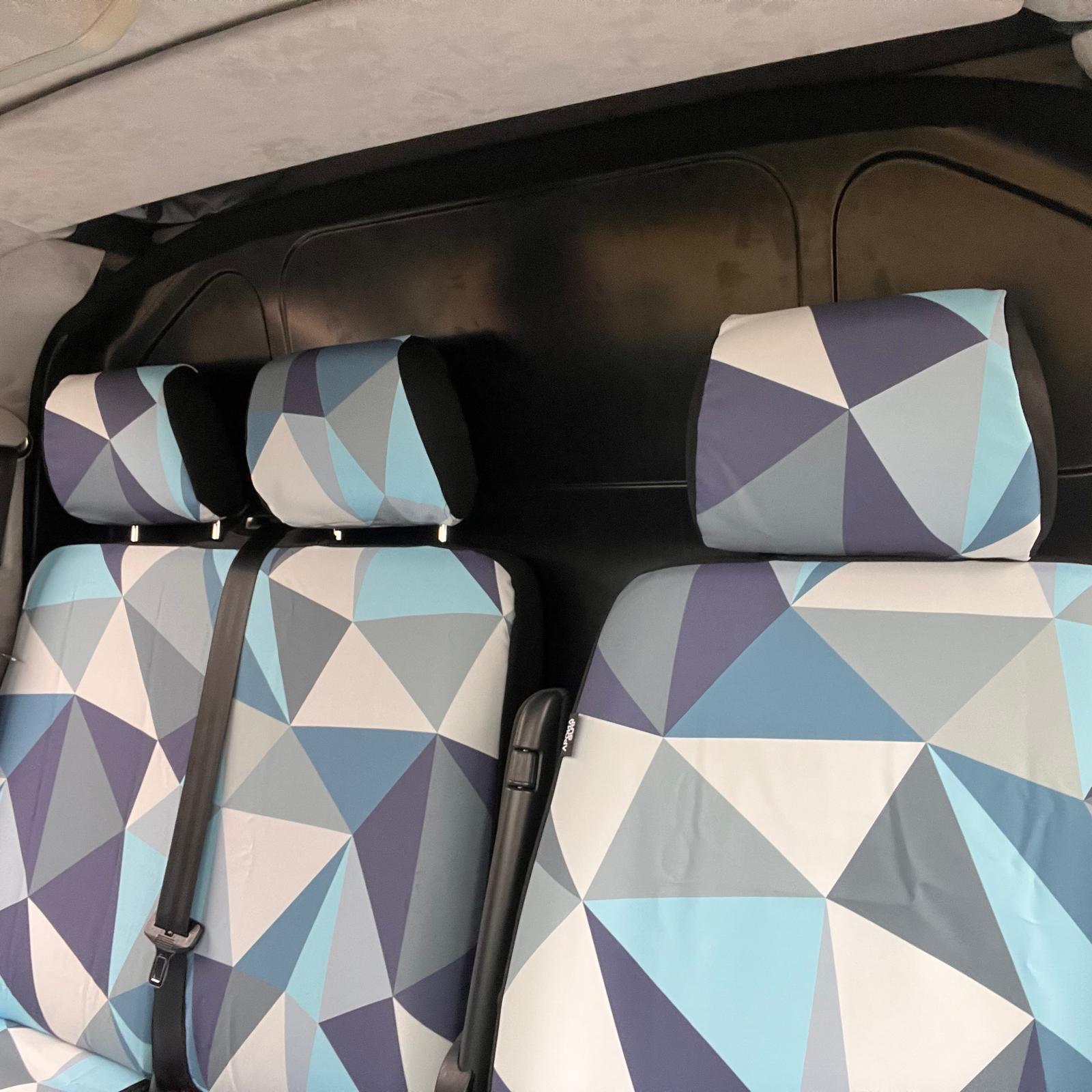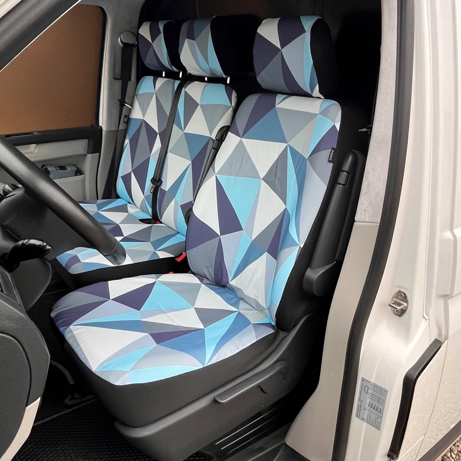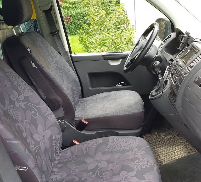 El Las fundas están equipadas con costuras especiales para airbags, marcadas con la etiqueta "AIRBAG", que actúa como una explosión controlada cuando se activa el airbag. Las fundas han superado con éxito las pruebas técnicas en los modelos VW T5 y T6 con airbags internos. No se aplica a modelos VW T5 más antiguos con airbag debajo de una cubierta de plástico.