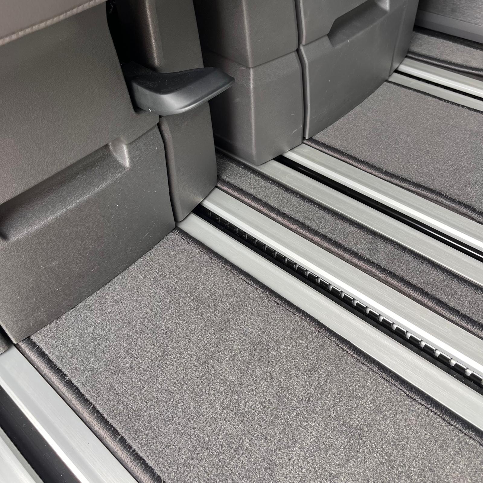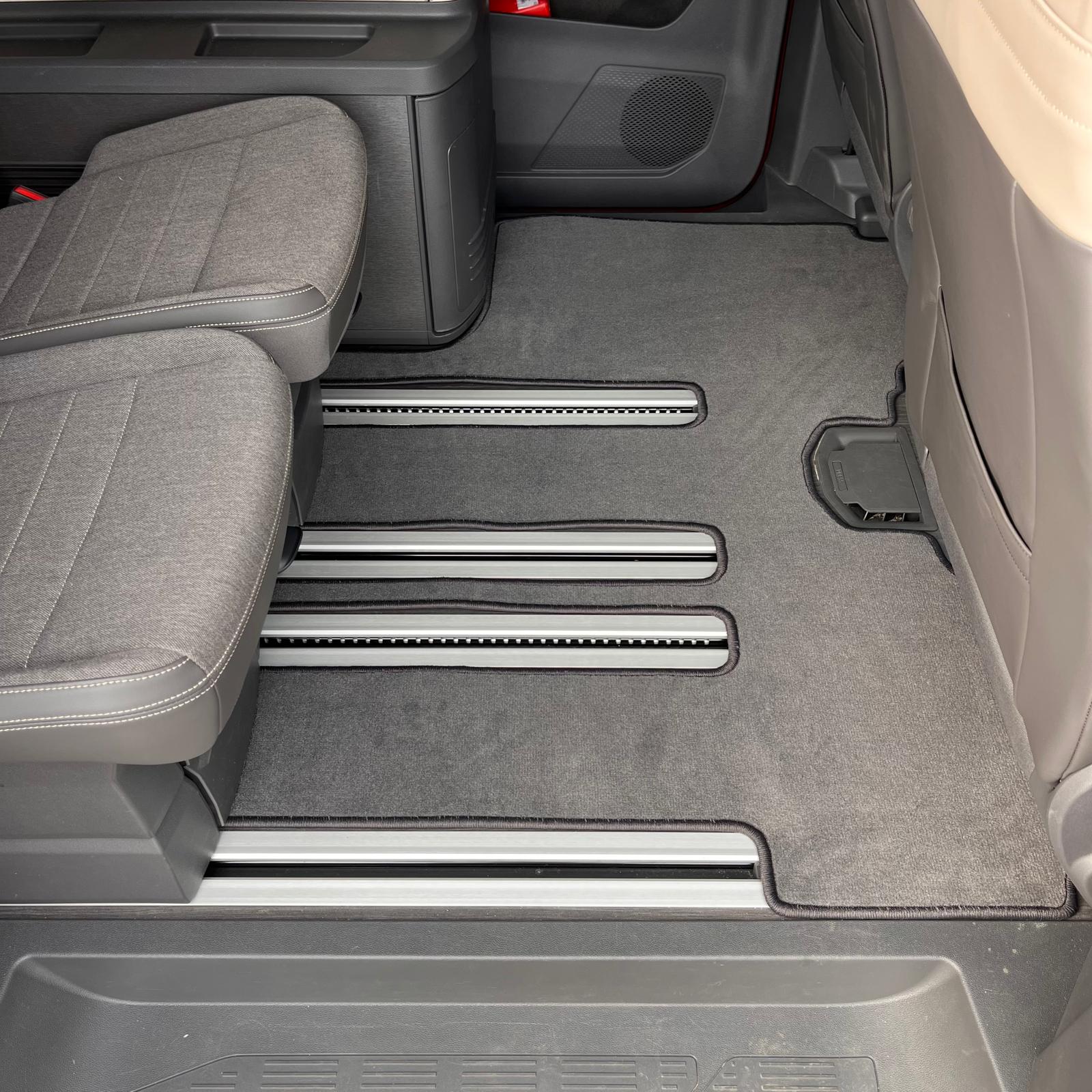 Nuestro juego de alfombrillas permite deslizar todos los asientos por los raíles del suelo o cubrirlos por completo.