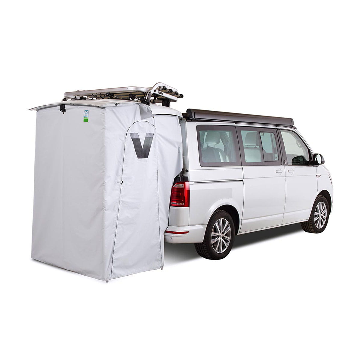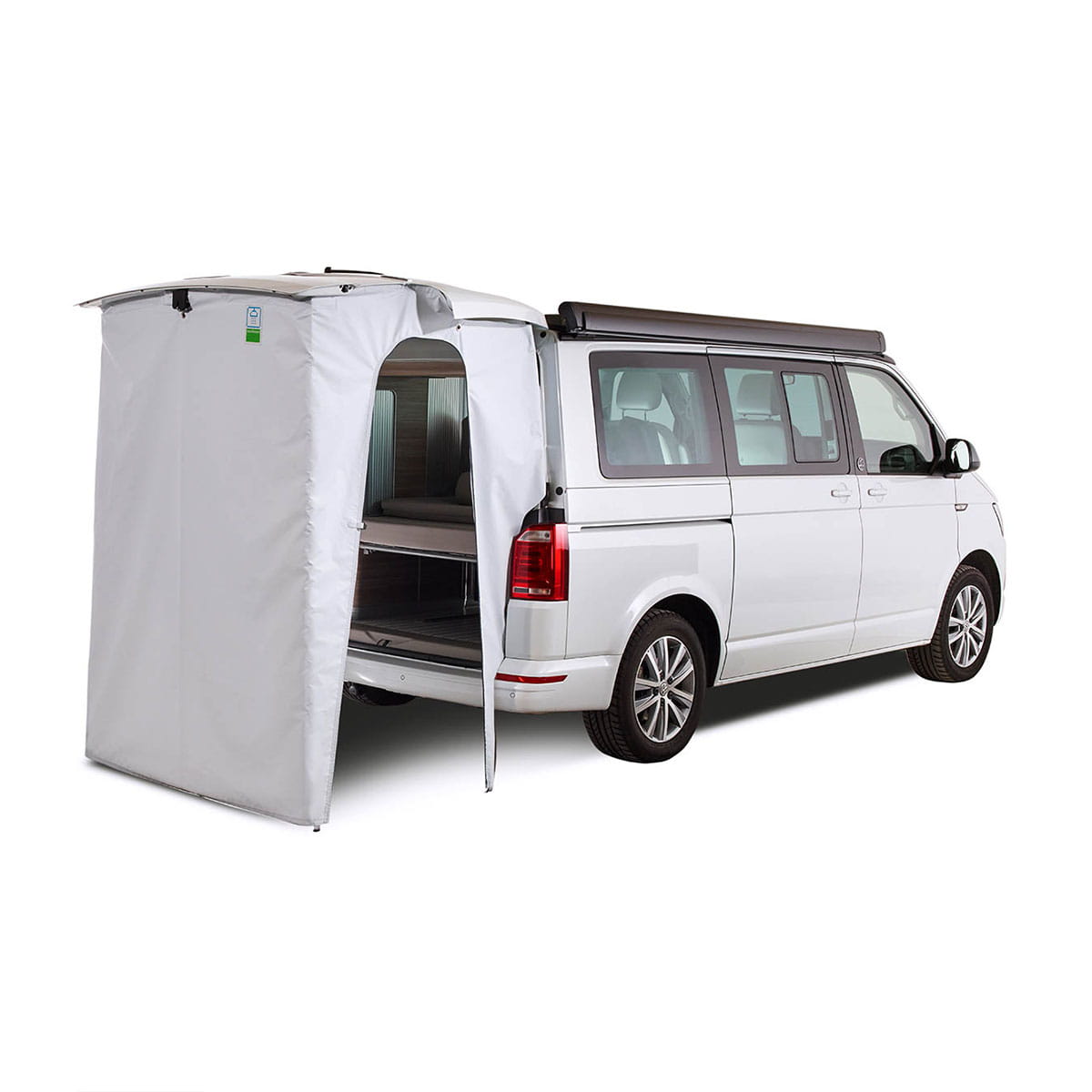 La tienda con portón trasero es la solución perfecta para cualquiera que quiera aprovechar al máximo el espacio en su Volkswagen Multivan, California Caravelle. Esta innovadora tienda de campaña le permite ampliar fácilmente su vehículo, creando espacio adicional que puede utilizarse como sala de estar o incluso cabina de ducha. Independientemente de si viajas a la playa o a la montaña, nuestra tienda de campaña te proporcionará comodidad e intimidad.