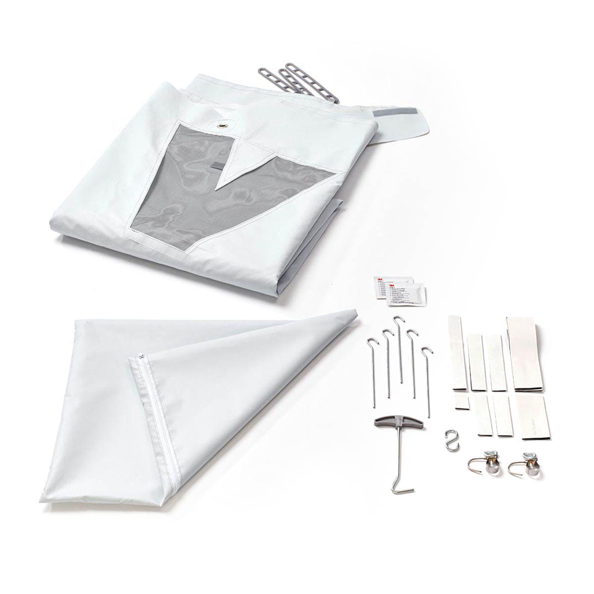 Contenido de entrega: tienda trasera, material de montaje, estacas, bolsa de transporte, instrucciones de montaje.