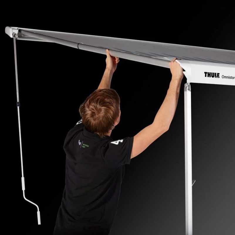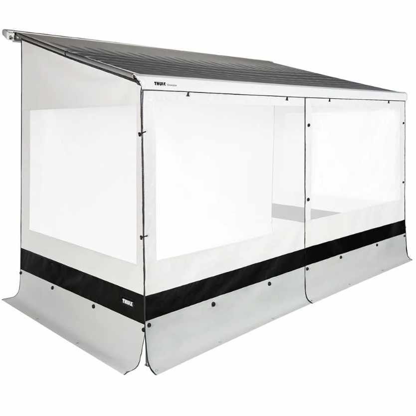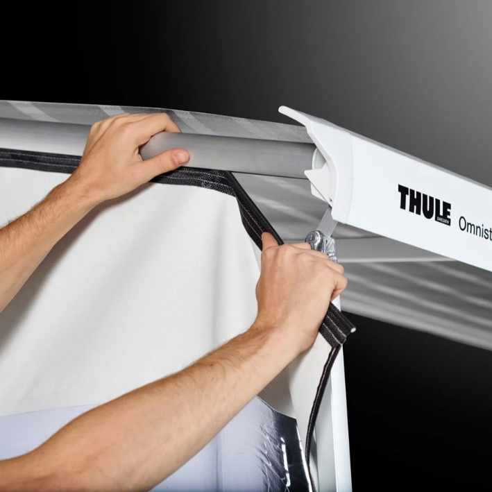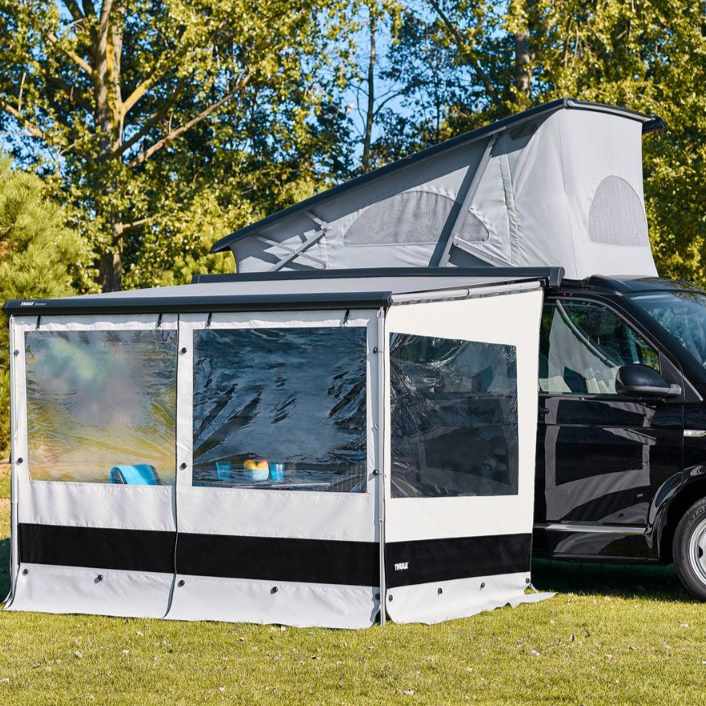 Estas paredes han sido diseñadas especialmente para el toldo Thule Omnistor 5102 y El toldo original Volkswagen. Los paneles también son compatibles con los toldos Thule Omnistor 4900 y 5200, siempre que la longitud del toldo sea de 260 cm, el saliente sea de 200 cm y la altura de instalación esté entre 180 y 199 cm (medida desde la parte inferior del cofre cerrado hasta el suelo) .
